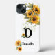Moda de primer nombre personalizada verano girasoles estuche de iphone amarillo sobre fondo blanco, es una mezcla de encanto y elegancia moderna, elaborada para resonar con el estilo de moda femenina. Puede agregar su nombre u otro nombre convirtiendo este encantador accesorio en una instrucción única. Es un regalo para ella.