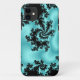 estuche de iphone de arte fractal negro y azul de bebé abstracto