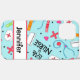 El arte ampuloso y caprichoso de las enfermeras crea un gran estuche para teléfonos celulares para una enfermera. Personaliza con un nombre en una banda blanca con un borde rojo. Las palabras con letras dibujadas a mano Love a Nurse están acompañadas de un estetoscopio, vendas coloridas, tapas de enfermería retro, corazones rojos y puntos blancos sobre un fondo azul claro. El arte caprichoso de Love a Nurse es arte original de Phyllis Dobbs. Los colores son blanco, rojo, negro, fucsia brillante rosa, verde limón, personalizable completo para personalizar.