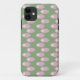 Este estuche de teléfono tiene un diseño moderno de ovalos rosas de mediados de siglo, conectados por líneas rosas con círculos de color blanco roto todo en un campo de verde claro. ¿Quieres colores diferentes? Mándame un mensaje.