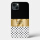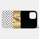 Elegante funda de smartphones con un diseño elegante y elegante que incluye elementos de diseño de oro simulados impresos digitalmente en la portada, puntos de polka blanco y negro de moda e iniciales de nombres de monogramas que puede personalizar y crear uno propio. Diseñado para mujeres o chicas que quieran llevar su celular con estilo.