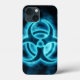 Estuche para iPhone negro con diseño de símbolo de riesgo biológico azul eléctrico.