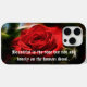 En este estuche de teléfono se muestra una hermosa foto de una rosa roja, con verso, "Hermosa es la rosa pero no tan hermosa como el alma humana". Es un gran regalo para El día de San Valentín, cumpleaños, aniversarios y más. Este fuerte Funda para iPhone 15 Pro Max ayuda a proteger tu teléfono móvil, en un funda de buen aspecto!