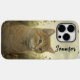 Diseño único de Cat creado a partir de Artwork. Cuenta con un Gato Cute Ginger-Naranja Tabby, sentado en un jardín de flores. Puede personalizar fácilmente este estuche para iPhone agregando su propio nombre.