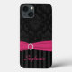 Este moderno damasco negro y gris con rayas patrón Funda-Mate Barely There™ iPad Air funda tiene una cinta imprimida rosada caliente y una hebilla de joyas de diamante IMPRESIONADA. Se puede personalizar con su logotipo, nombre, iniciales u otro texto. Si necesita ayuda, envíe un correo electrónico a niteowlstudio@gmail.com.