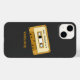 Un estuche de teléfono negro con una cinta cassette y un personalizable de texto y nombre: añade un toque nostálgico de los años 80 y 90 a tu vida. ¡O también se puede hacer un regalo a un amante de la música de la vieja escuela y de los equipos antiguos!