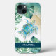 Este estuche de teléfono personalizado cuenta con una tortuga acuática, una orilla y hojas de palma de monstera tropicales. Personaliza tu nombre en blanco sobre un fondo azul marino. Obra y diseño de Victoria Grigaliunas. Para ver más vida marina y casos de teléfono de playa como este visita www.zazzle.com/dotellabelle