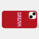 Este estuche Dream iPhone presenta un fondo rojo cereza con una fuente magnífica. Este diseño representa la belleza de un sueño. ¡Sueña!