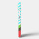 Elegante estuche para iPhone de diseño con motivos modernos de zigzag aguamarina y chevron blanco, con franjas de zigzag verdes, marrones y de color coral en la parte inferior. La parte izquierda está decorada con gráficos de una tortuga marina de inspiración azteca, de color marrón, aguamarina, verde y naranja de coral. Personalice el texto en blanco para que se ajuste a sus necesidades. Excelente manera de personalizar tu teléfono con un aspecto divertido que todos te preguntarán. Elige el estilo de iPhone en el que quieres este diseño.