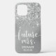 Este hermoso estuche de teléfono de Relieve metalizado plateado con purpurina en cascada desde arriba que dice "futuras mrs." en una letra de escritura moderna y que tiene tu futuro nombre de matrimonio y fecha de boda es perfecto para ti mientras planeas a tu boda. Se verá genial en tu teléfono. ¡Debe de haber una novia!