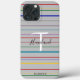 Caso de teléfono celular personalizado con su nombre y inicial, con líneas coloridas, fondo de color de personalizable . Diseñado por HAMbyWhiteGlove aka HAMbWG. mostrado en gris.