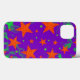 Estuche de teléfono esparcido con estrellas naranjas y verdes "brillantes" sobre un fondo violeta y verde giratorio. Un diseño de personalizable para que añadas tu propio texto, imágenes e ideas. Creado mediante técnicas digitales por Jess Perry.