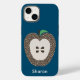 Elegante estuche para iPhone de profesor hecho en azul federal, con una llamativa manzana de leopardo impreso. El texto personalizado, en la parte inferior del funda, está listo para personalizar. Gran funda para cualquier educador.