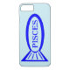 Este increíble estuche para iPhone presenta un contorno de un pez azul con detalles de bonito dentro. También hay un texto que dice Pisces dentro del contorno del pez. Este diseño es ideal para personas con cumpleaños entre el 19 de febrero y el 20 de marzo.