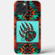 ¡Este es un estuche único para iPhone de "One of a Kind" tribal Bear Paw Cell! Cuenta con una ruta de oso tribal nativo americano, que representa protección y buena salud, en un fondo turquesa y rodeada por un borde turquesa, Naranja y negro! Diseño original de arte gráfico por el artista Kerry Miller.