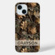 Customize this fall leaves camouflage iPhone 15 case with your name in a trendy modern CAP font in brown on opaque cream. It's masculine and perfect for your favorite military, hunting, country or outdoorsman!
