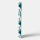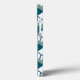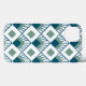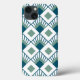 Este estuche de teléfono tiene un diseño Art Déco de diamantes verde azulados con líneas diagonales y diamantes verdes de marea marina en un campo de blanco.