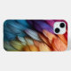 plumas azules, naranjas y moradas en un funda para iPhone 15
