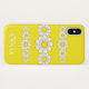 Diseño de margarita blanca y amarilla con un color de fondo amarillo brillante coordinado en este estuche moderno para iPhone. Fácilmente personalizar con su monograma en color de acento.
