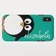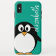 Funda De Case-Mate Para iPhone fuente manuscrita esmeralda del pingüino lindo del