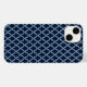 El funda Apple iPhone 14 se muestra en una impresión de patrón azul marino y blanco. Personalizar o compra como está. Imagen de stock