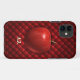 Ilustracion de manzana jugosa sobre fondo con estampado rojo con iniciales de personalizable o nombre.