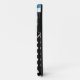 El moderno se encuentra con el Funda de iPhone 5 inspirado en el país, diseñado con un patrón de gingham azul y blanco en la parte superior, un patrón de puntos polka en blanco y negro en la parte inferior, y personalizado con su nombre o texto personalizado en blanco sobre una franja negra diagonal.