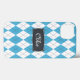 Modalidad de estilo de argyle elegante, moderno y elegante, de color azul, blanco y gris, con una placa de personalizable para personalizar tu nombre. Patrón retro geométrico de diamante vector de moda.