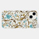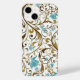 El funda iPhone 14 se muestra en un diseño de impresión floral floral moderno azul y blanco. Personalizar o compra como está.