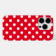 iPhone 14 Pro funda se muestra en una tibia impresión de puntos de polka rojo y blanco. Personalizar o compra como está.