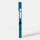 Estuche para iPhone personalizado de gótico lindo con un ilustracion digital de un divertido personaje no muerto de piel oscura con ojos brillantes, pelo azul, ventiladores y capa roja vibrante sobre fondo azul oscuro. Diseño divertido para Halloween.