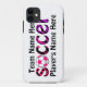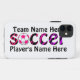 texto del estampado de zebra del ~ del caso del iPhone en raya rosada y púrpura de la cebra con un balón de fútbol. El nombre adaptable del equipo y del jugador, puede también cambiar el color del caso. #soccer