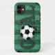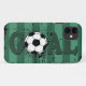 Diseño de fútbol en marco negro gris sobre fondo rayado verde