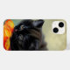 Funda De Case-Mate Para iPhone Gatito negro vintage con manta de flores rojas