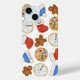 Celebrate the Christmas season with this Christmas cookies phone case. With red, blue, brown, white, green, orange, black, and tan colors, the design features gingerbread, candy chocolate chip, stockings, winter cap, and marshmallow snowman cookies. The case can be customized by changing the "Merry" and "Christmas" text.