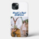 Phone case with World's Best girlfriend in 3D sea blue text. Customize it with your own photo. Available for several phone styles.