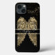 "Girly Angel Wings Gold Sparkle Diamond Jewels Moda iPhone 13 Funda." Elegante hoja de oro luce filigree encaje Ángel alado con un torbellino de estrellas brillantes, dos filas de joyas "diamante" blancas y tu nombre en caligrafía de escritura. Diseñado de forma gráfica por la artista con licencia internacional Audrey Jeanne Roberts, copyright.