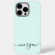 Funda De Case-Mate Para iPhone Girly Blue Monograma Moderno Script Personalizado