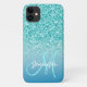 Funda De Case-Mate Para iPhone Girly Teal Faux Glitter Monogram Name Personalized