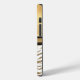 Estuche para iPhone de tonos dorados, con gráficos de un purpurina dorado y un patrón de cebra blanca, a través del fondo y de un oro sólido, a través de la parte superior, del funda. Una cinta negra y dorada de bonito recorre el centro del funda y está coronada con un arco de oro de bonito. Personalice el monograma negro de una letra para satisfacer sus necesidades.