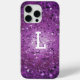 Funda De Case-Mate Para iPhone Glamoroso Monogramado Purpurina Púrpura