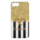 Funda De Case-Mate Para iPhone GOLD PURPURINA BLACK vertical STRIPTS BOW MONOGRAM