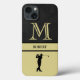 Funda De Case-Mate Para iPhone Golf Guy Black Leather Textura Monograma Nombre