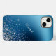 Este elegante estuche de teléfono presenta un fondo azul cielo metálico bonito con salpicaduras de confeti plateado y rosa pálido y brillantes estrellas en el tercio inferior derecho. Tu nombre está en plata hacia el centro superior. Un poco de chispa de buen gusto sin ser demasiado ostentoso.