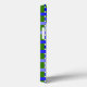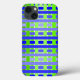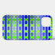 Este estuche de teléfono tiene un diseño geométrico de líneas en tonos azules y verdes para hacer una manta.