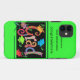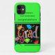 Este funda es para el I phone 5, también disponible en otros estilos. Con un fondo verde brillante y un signo de gracia con gorras, remolinos y confetti de diferentes colores. Todo esto sobre un fondo negro y una cinta verde alrededor. El funda está a la cabeza con Felicitaciones y de eso puede ser personalizado con su propia información.