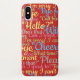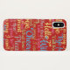Diseño chapucero en varios colores en un estuche de teléfono rojo.