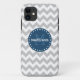 Funda De Case-Mate Para iPhone Gris Blue Chevron Zigzag Monograma