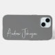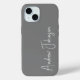 Este funda monogramado de iphone gris 15 es moderno y clásico. Incluye tu nombre en un fabuloso y moderno tipo de letra en blanco. Es simple, mínimo y profesional.