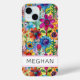 Make a retro statement with this groovy 70s inspired hippie flower power iphone 15 phone case! It's modern and trendy with bright multi-colored watercolor flowers. Make it uniquely yours with your name in a mod CAP font in black. It will look fabulous on your phone!